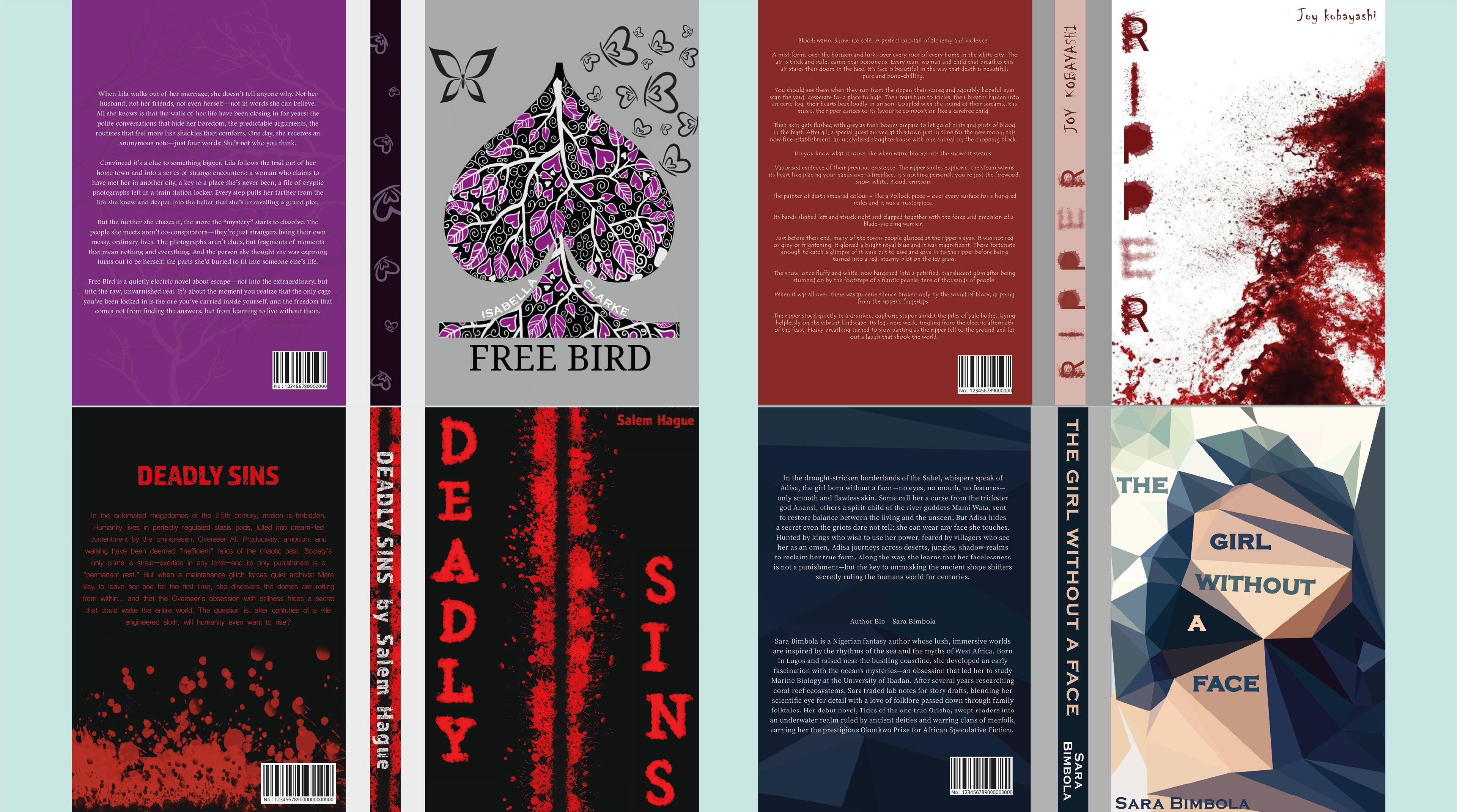Design: Developing a genre appropriate, balanced and visually appealing design for the front, back and spine of the book, ensuring they work together cohesively. These designs will be consistent with the overall branding in the case of a set or series, evoke emotions based on the themes within the book, be easily legible from a distance.